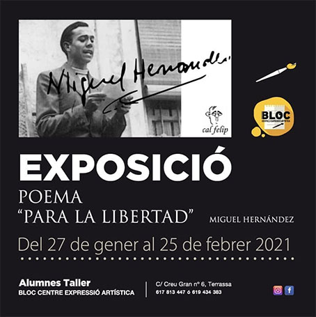 Fins al 25 de febrer es pot visitar al Bar Cal Felip del carrer Sant Pau l’exposició col·lectiva de BLOC Centre d’expressió artística sota el nom de «Poema. Para la libertad de Miguel Hernández».